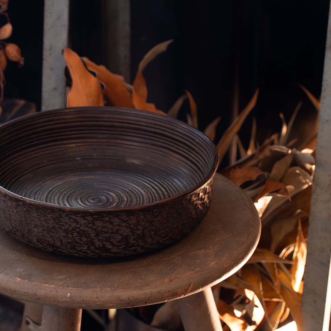 ドライフラワーのリースを入れるとより奥深い雰囲気を漂わせてくれます。