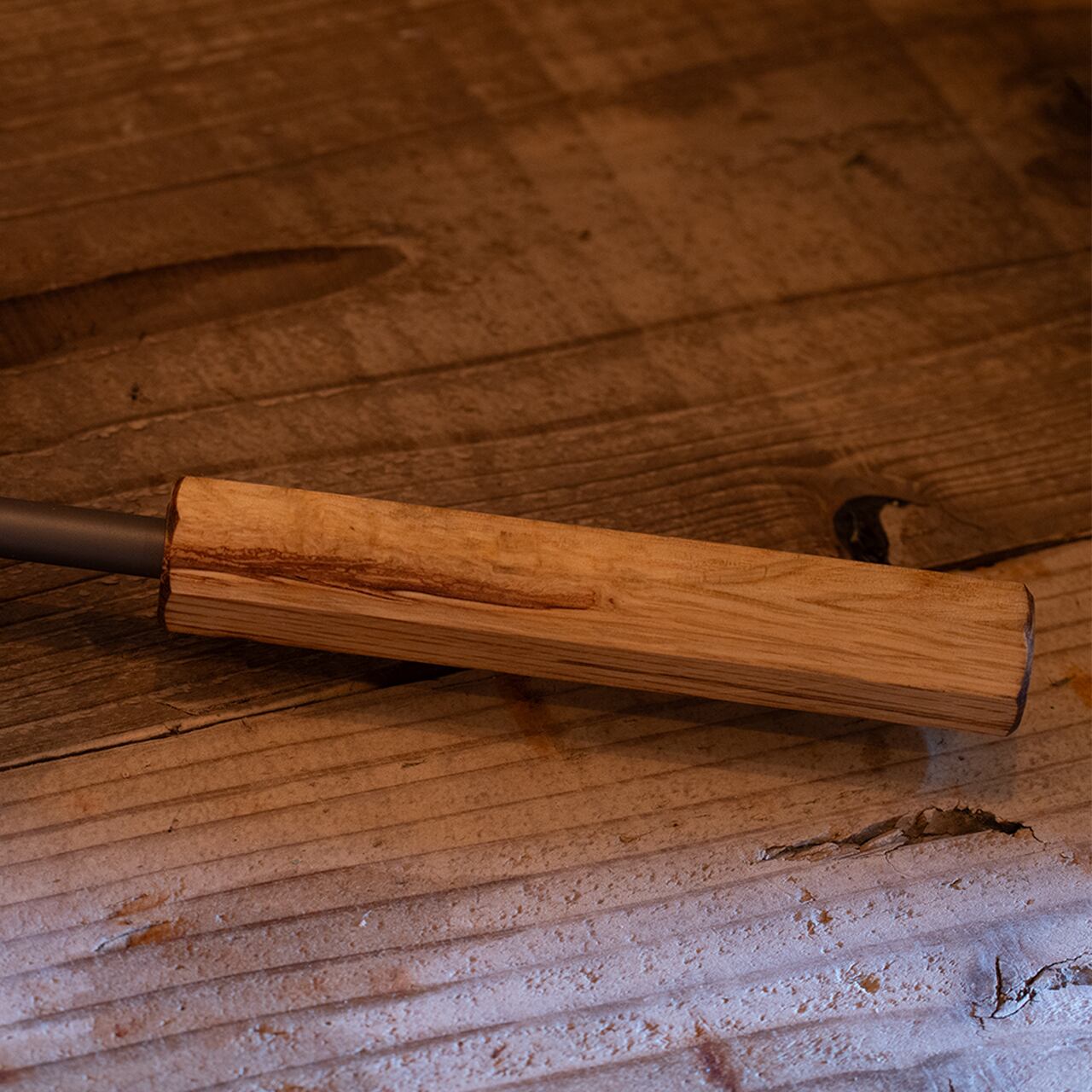 ハンドルは八角形に削り出した堅い樫の木を使用。